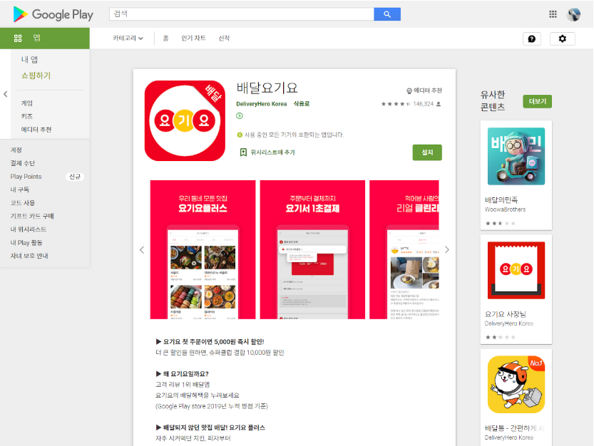 구글 플레이 스토어 2019년 누적 평점 기준 고객 리뷰 1위 배달앱 입니다.